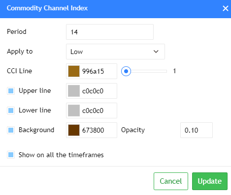 - CCI — identifies overbought/oversold conditions