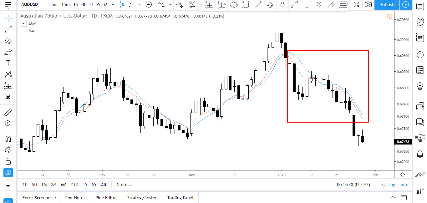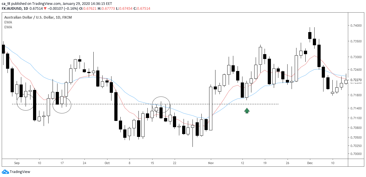 To earn with the ЕМА, one needs to enjoy the trend trading and use indicators as support / resistance:
