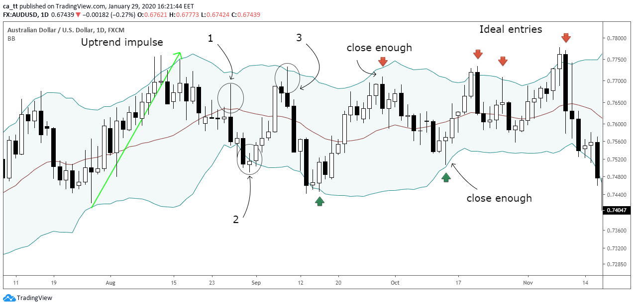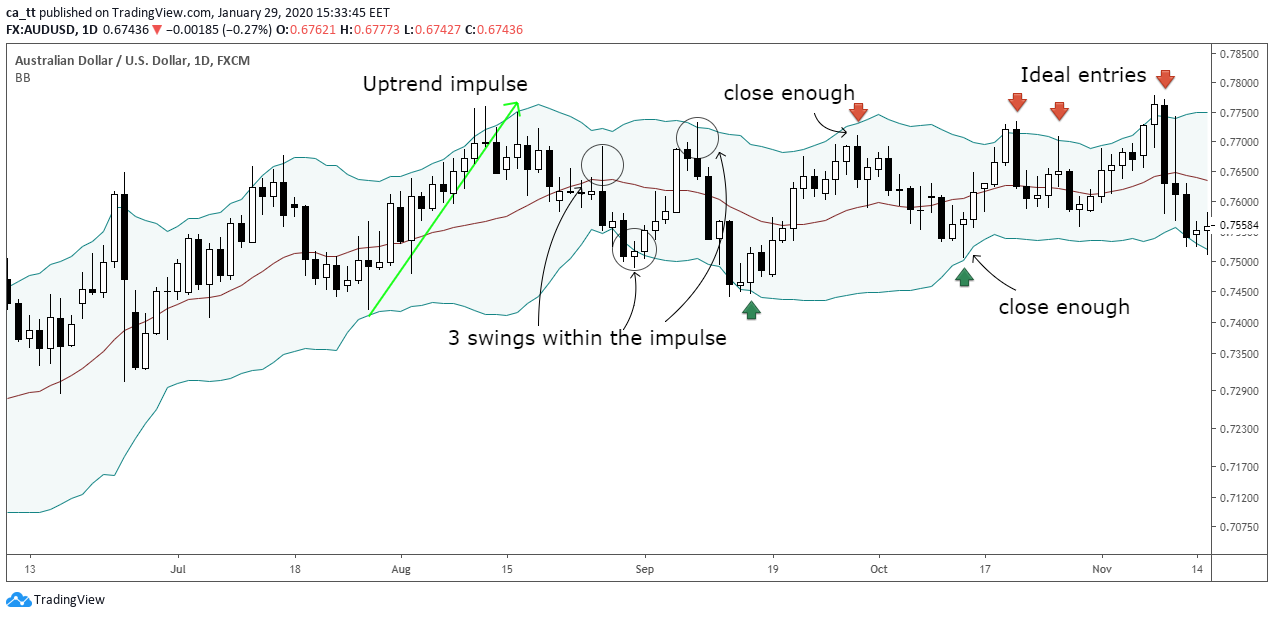 - The candle is either close enough to the boundary (a reasonable entry signal) goes beyond it (a strong entry signal).
