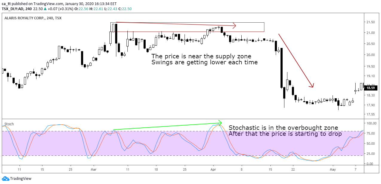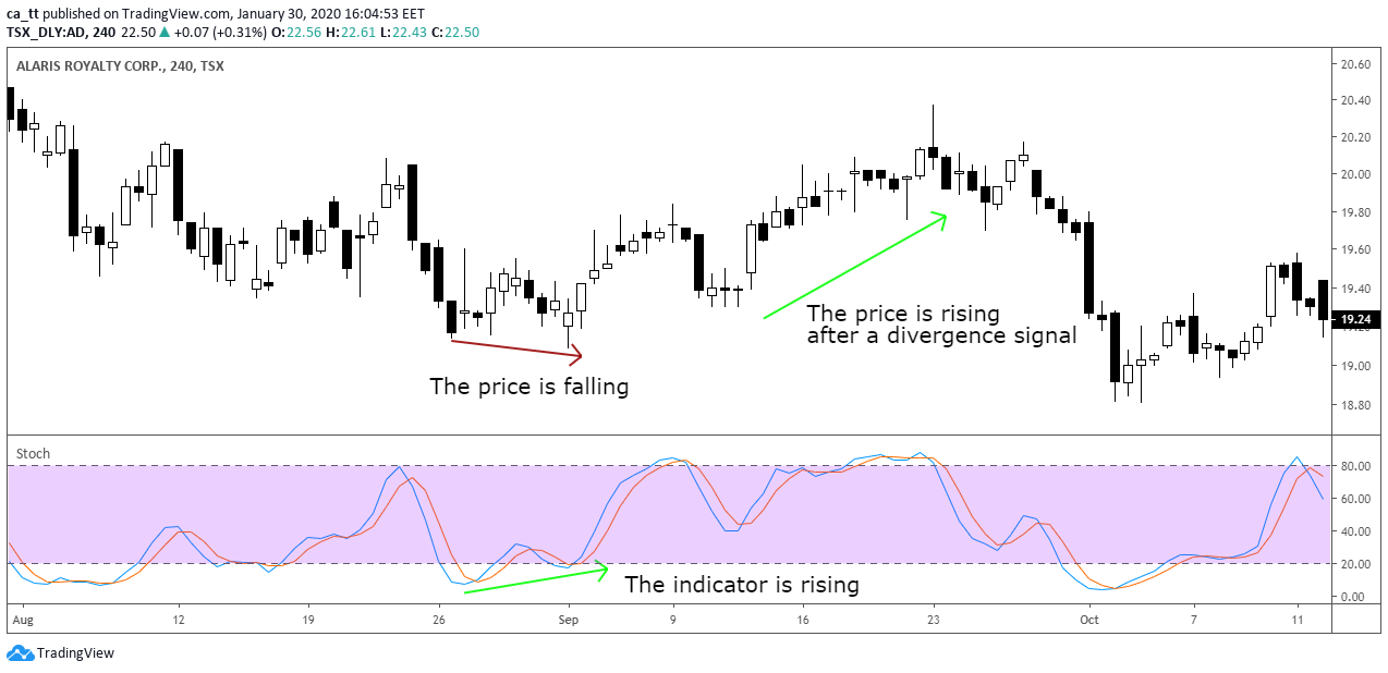 - The price and Stochastic show different things: one of them is growing, another is reducing, or vice versa.
