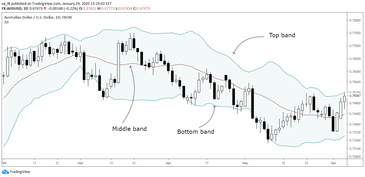 This indicator consists of 3 bands: the upper, the middle, and the lower bands.