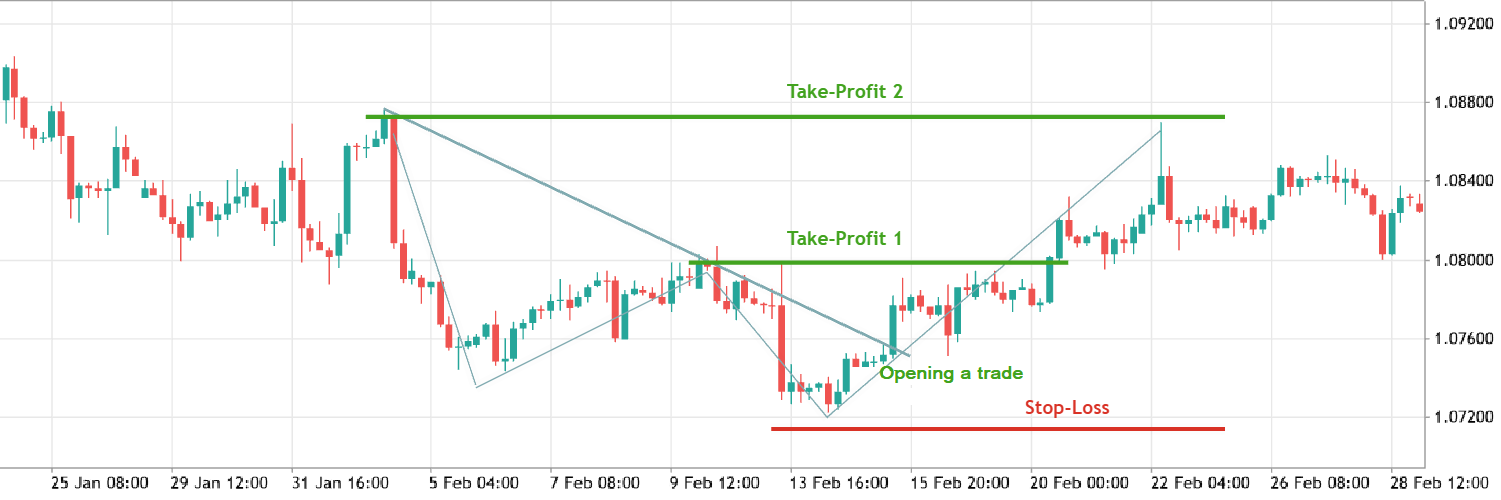 - Aggressive style: Aim for the level of the “head.” However, this may require more patience as it could take longer for the price to reach this target.