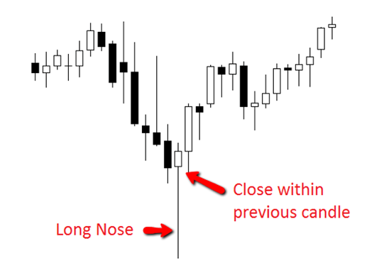 The candles under the arrows are called pin bars. The name comes from the original term “Pinocchio Bar”, a Pinocchio candle. Remember the tale of the wooden puppet-boy whose nose grew longer every time he told lies? Let us explain: