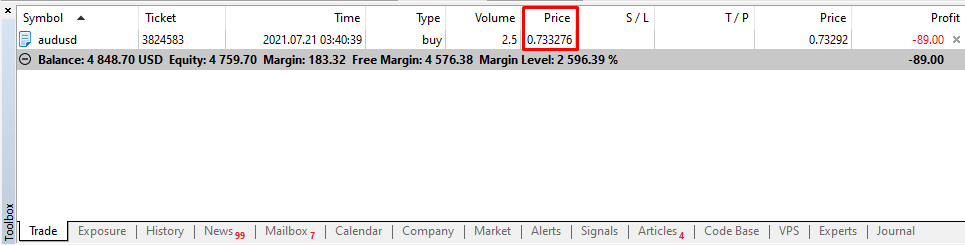 The screenshot below shows an example of “Netting System” when you buy 0.5 lot for EURUSD twice.