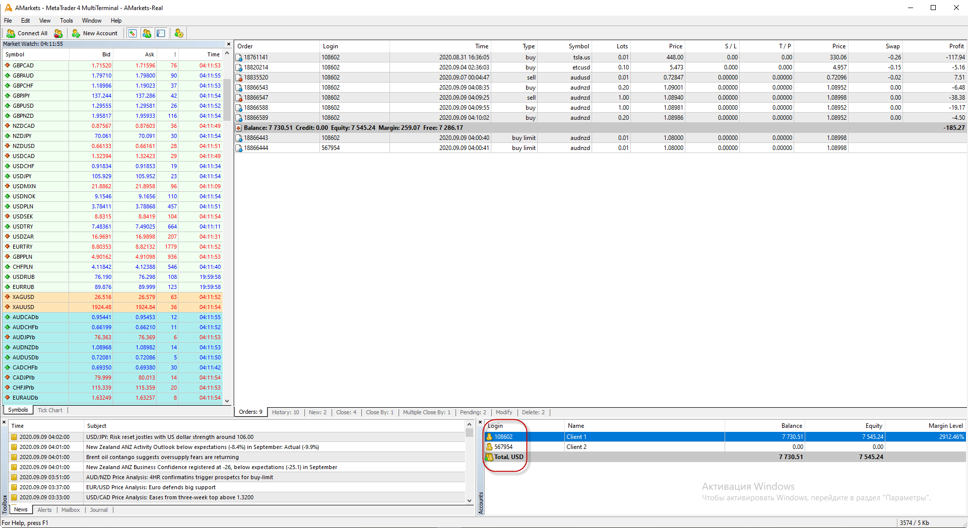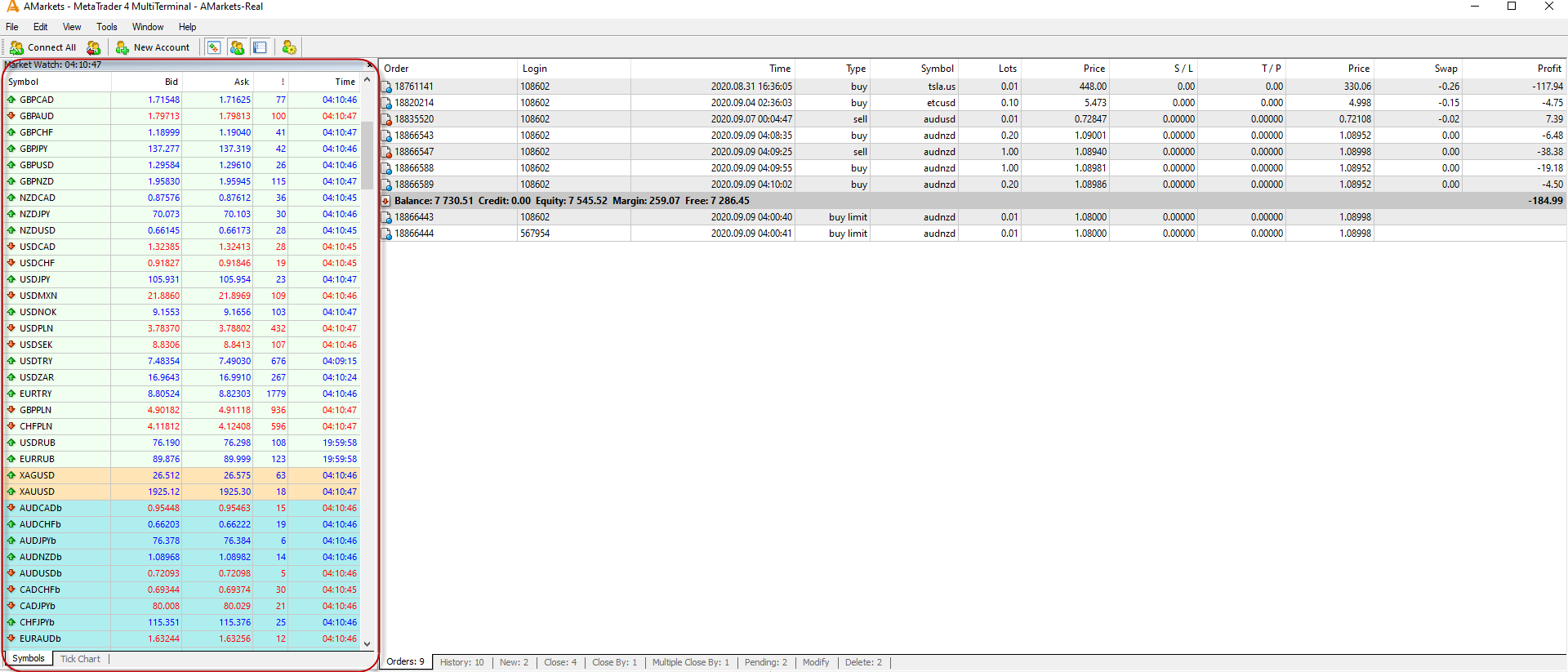 MetaTrader 4 MultiTerminal is a new component of MetaTrader 4 Online Trading Platform, designed specifically for simultaneous management of multiple accounts. It’s an effective tool both for professional asset managers and for independent traders working with several accounts simultaneously.