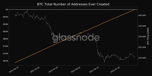 Graph 1. The total number of BTC addresses created. Source: Glassnode.