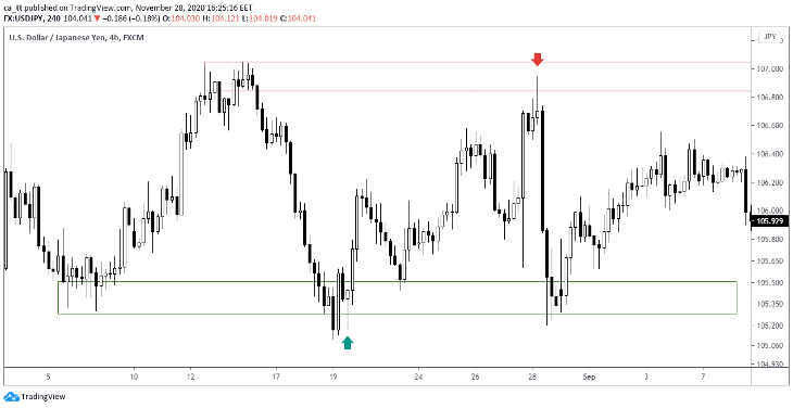There were obvious clues on the chart that the price was about to go down. For example, the round level 105.00.