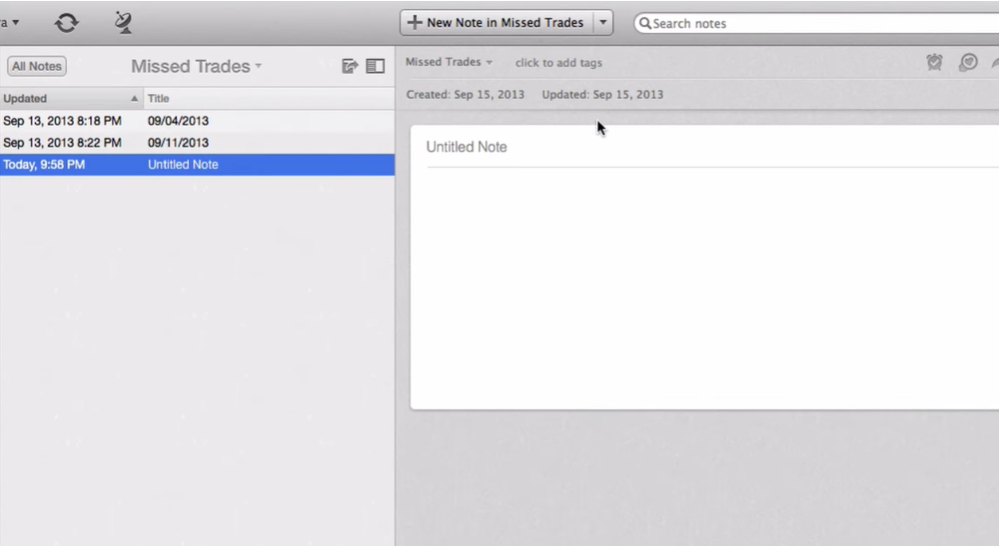 - Open Evernote at the beginning of your trading day.