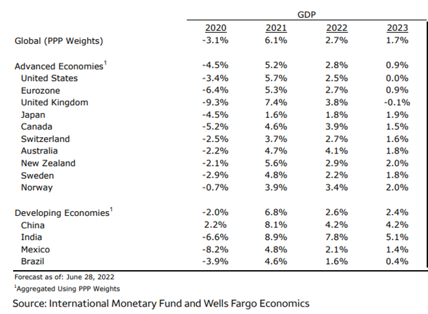 Fig. 3. GDP growth by country 2020–2022 and projections for 2023. Source: IMF, Wells Fargo.