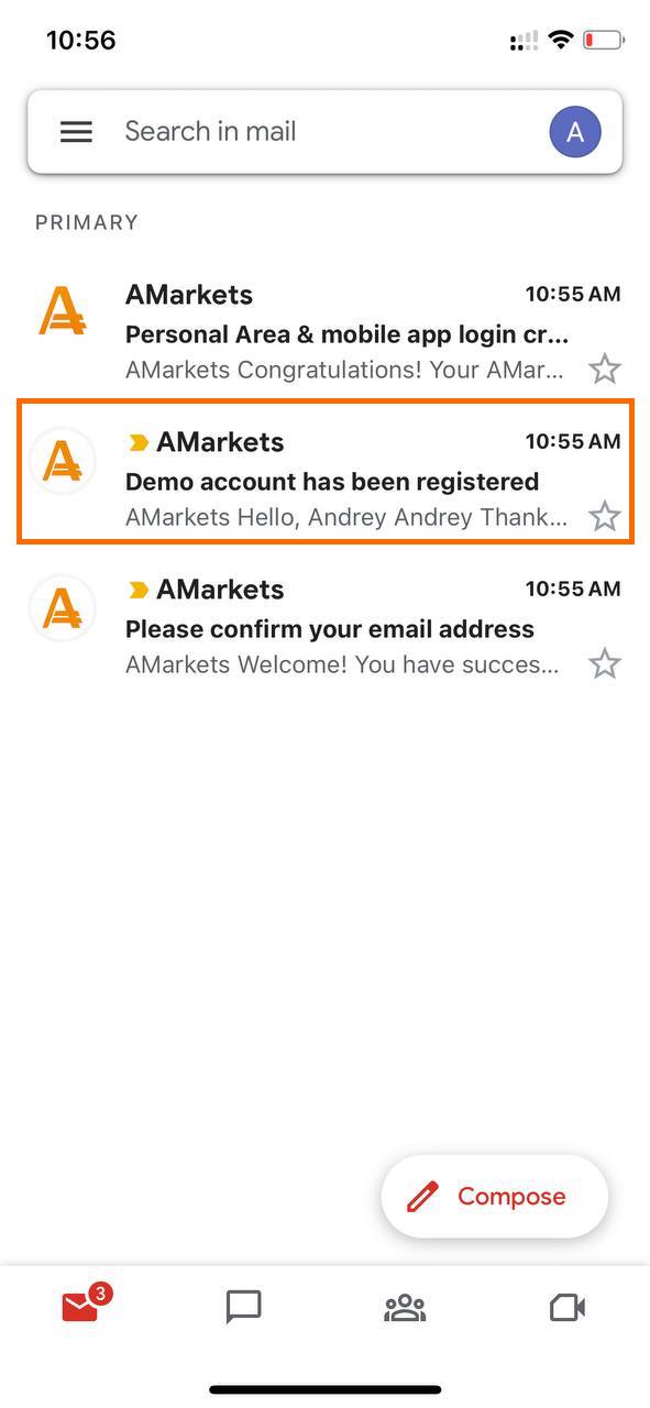 Go to your inbox and type “Demo account has been registered” in the search box: