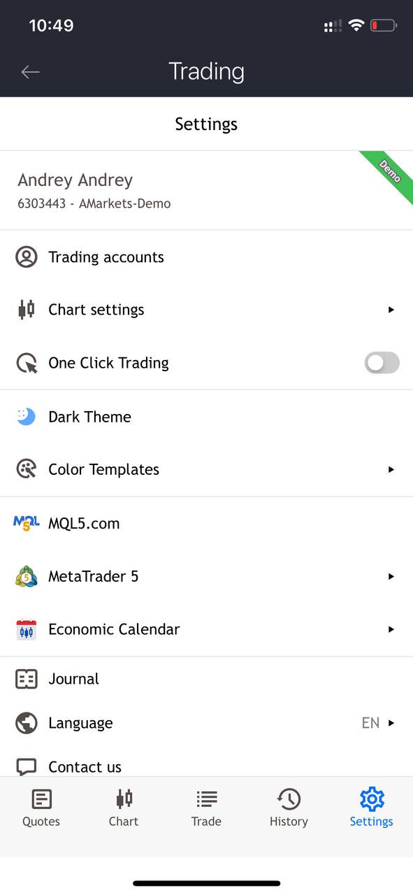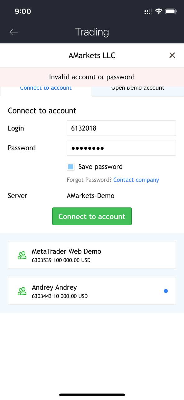 - The account is no longer active. If you don’t use an account for an extended period of time, it’s automatically archived. You can open a new demo account. Simply tap ‘Settings’ in the bottom menu of the screen and go to the ‘Trading accounts’ section to register a new account.